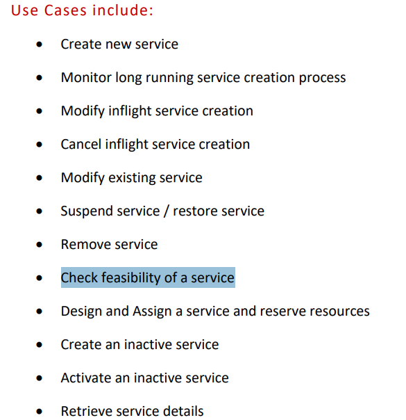 Many Thanks @Matthieu Hattab for your feedback and inputs. I am also of same understanding that 640 is mainly meant for service activation and provisioning however there are use case or scenario where as part of service qualification we drill down till EMS layer to check capacity and all where they support TMF 640 and they found following context in API guideline so was checking if something we can use and explore it as per TMF standards to do feasibility check.