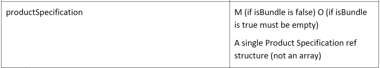 It is not clear to me if productSpecification is Optional in this case, or forbidden?